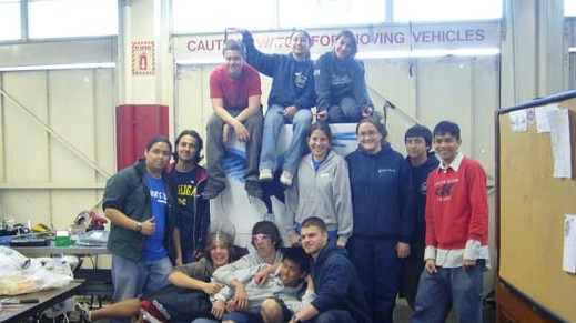 Aim High is played by two alliances, red and blue, each consisting of three robots. During a 10-second autonomous mode robots are programmed to score into any of the three goals: one raised center goal marked by a green vision target and two corner goals at floor level. At the end of the autonomous period the alliance with the most points will gain a 10-point bonus and will be placed on defense for round two. Rounds two, three and four are each 40 seconds long and are human-controlled rounds. Between rounds two and three the alliances switch from offense to defense or vice versa. At the start of round 4 any alliance can score into the corresponding goals. At the end of the match any alliance can receive bonus points by placing its three robots on a platform below the center goal. The alliance with the most points wins with scoring as follows: 3 points for any ball scored in the center goal, 1 point for any ball scored in the corner goals, 10 bonus points for scoring the highest in the autonomous round and 25 points for placing all 3 robots on the platform at the end (10 points for 2 robots and 5 points for 1 robot).